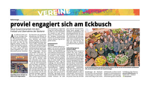Am Eckbusch bietet proviel ein wichtiges Kommunikationszentrum: Im CAP-Frischemarkt finden die Menschen aus dem Quartier nicht nur alles für den täglichen Bedarf, sondern sie treffen ihre Nachbarn, tauschen sich über Neuigkeiten aus. Dieser Aspekt wird jetzt weiter ausgebaut: Zum 1. April übernimmt proviel, Werkstatt für Menschen mit psychischer Behinderung, die Bäckerei im CAP-Frischemarkt von Policks. Brot, Brötchen und Kuchen werden weiterhin von Policks Backstube geliefert; hinter dem Tresen stehen zukünftig Mitarbeiter*innen von proviel. Ein neuer Kaffeeautomat produziert guten Cappuccino und Latte Macchiato. Nette Sitzgruppen drinnen und draußen laden zum Verweilen ein. So kommen die Nachbarn schnell ins Gespräch. Ohne großen Aufwand trifft man sich im Quartier, fühlt sich verbunden und Einsamkeit hat erst gar keine Chance.
