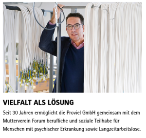 Seit 30 Jahren ermöglicht die proviel GmbH gemeinsam mit dem Mutterverein forum berufliche und soziale Teilhabe für Menschen mit psychischer Erkrankung sowie Langzeitarbeitslose. Das Unternehmen ist in der Wirtschaft gefragt und fester Teil der Wuppertaler Stadtgesellschaft.