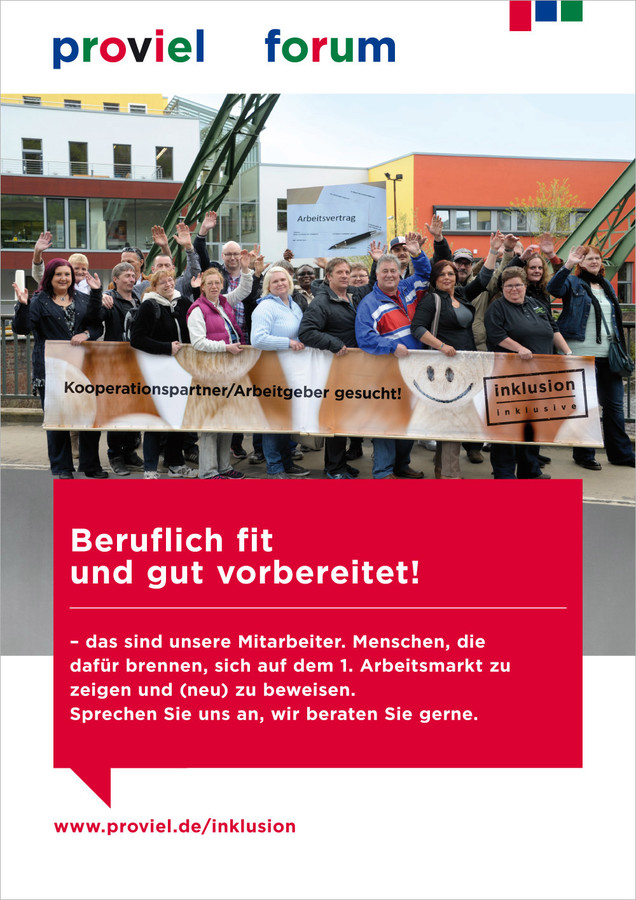 Wir freuen uns sehr auf diesem Wege zu zeigen, wie erfolgreich Inklusion in Zusammenarbeit zwischen proviel, anerkannte Werkstatt für Menschen mit psychischer Behinderung, bzw. den Mitarbeiterinnen und Mitarbeitern unseres Hauses auf der einen Seite und Wuppertaler Unternehmen/Institutionen/Einrichtungen auf der anderen Seite sein kann.