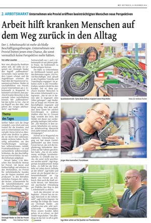 Gerne veröffentlichen wir an dieser Stelle einen tollen Einblick in unsere tägliche Arbeit über einen Zeitungsartikel in der Westdeutschen Zeitung. Lokalchef Lothar Leuschen blickt im „Thema des Tages“ genauer auf und in unser Unternehmen und auf die Bedeutung von Arbeit, Tagesstruktur und Erfolg.