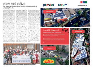 „Ich bin sehr froh, dass ich bei proviel die Chance bekommen habe, den richtigen Weg zu finden“, sagt Frank Schulz. Für viele Mitarbeiter bedeutet der Arbeitsplatz bei proviel den wichtigsten Lebensinhalt. Die Werkstatt für Menschen mit psychischer Beeinträchtigung stellt für jeden von ihnen einen passenden Arbeitsplatz bereit. So gibt es neben der Metallverarbeitung und Montage auch Arbeitsplätze in der Küche, Hauswirtschaft oder im Büro sowie diverse Außenarbeitsplätze. Die stetig wachsende Belegschaft und die große Akzeptanz bei den Unternehmern des Bergischen Landes bestätigen das Konzept. Zum 25-jährigen Bestehen präsentiert sich proviel als vielseitiges Unternehmen und sozialer Arbeitgeber