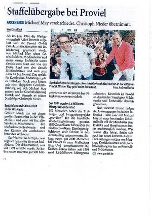 Nach 2 Jahren „Doppelspitze“ wurde Michael May am 12.07. aus der Geschäftsführung bei proviel verabschiedet. Christoph Nieder übernimmt alleinverantwortlich die Geschäftsführung.