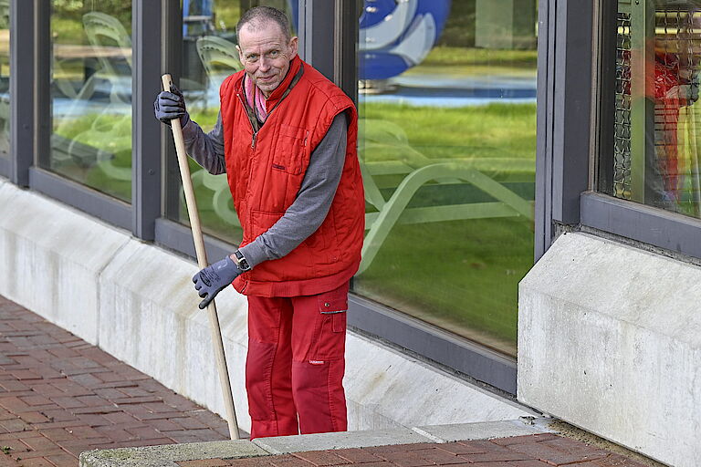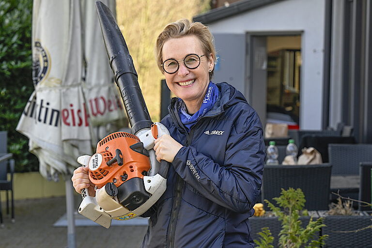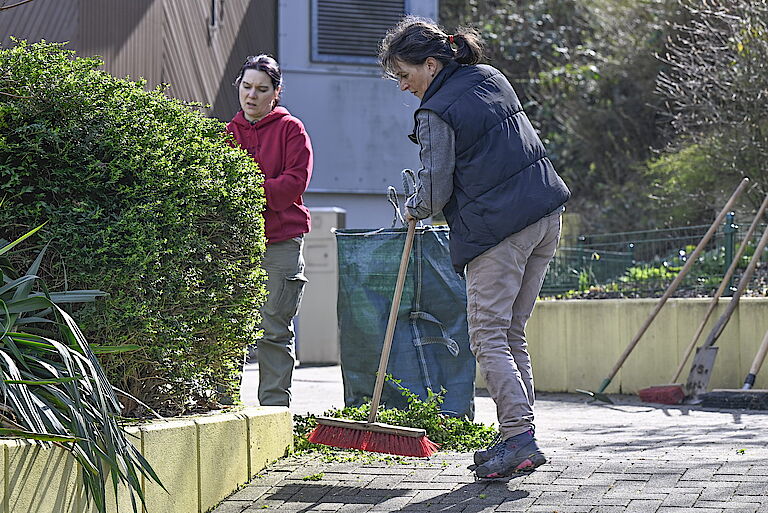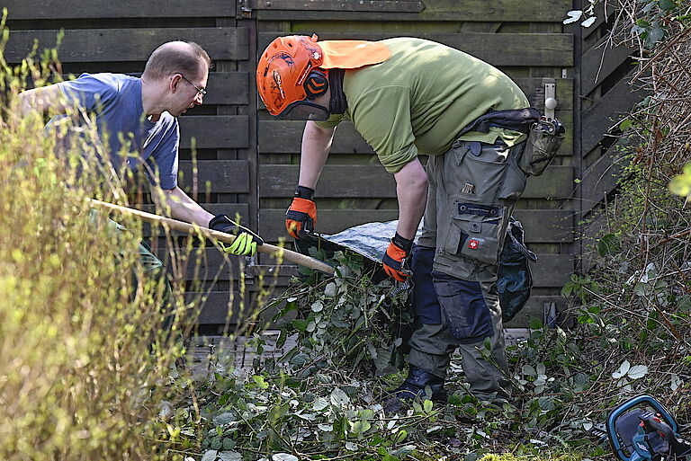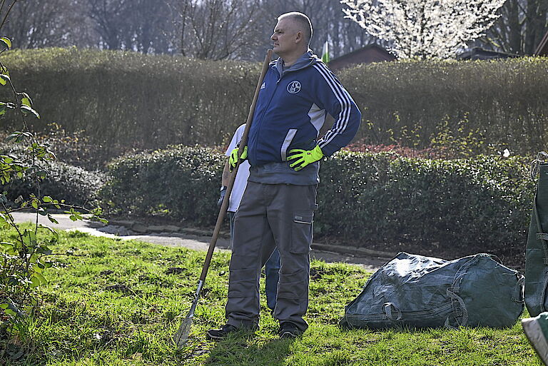 „Ich arbeite gerne draußen und freue mich schon sehr auf die Freibad-Arbeit im Sommer“, sagt etwa Jörg Neuhoff. Nadine Haustein hat schon die vergangene Saison im Freibad gearbeitet und ist begeistert: „Das war total toll!“ Das Aufgabengebiet hat sie so stark motiviert, dass sie auch privat für den Rettungsschwimmer trainiert. Die Regenschauer vom Vormittag konnten sie bei der Gartenarbeit nicht stören. „Das sind wir aus dem Freibad gewöhnt.“ Gut, dass proviel lange Regencapes zur Verfügung stellt, damit der Oberkörper trocken bleibt.
