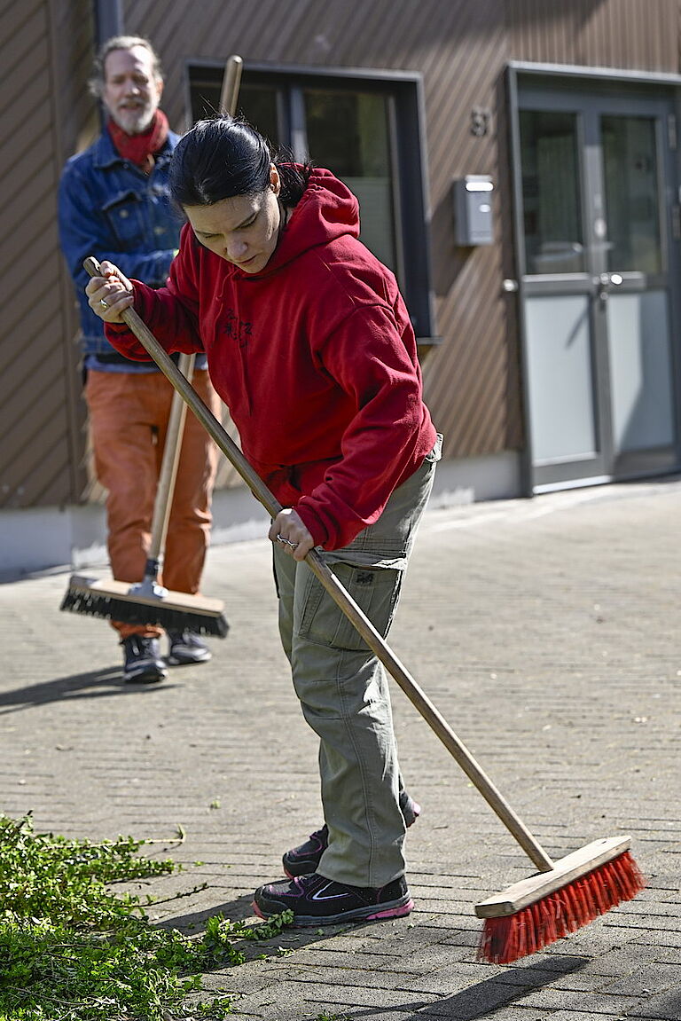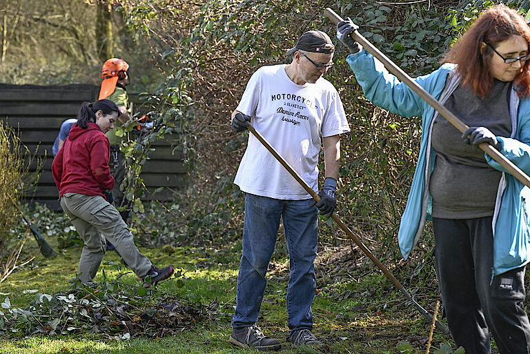 Gleichzeitig konnten die Teilnehmenden auch ausprobieren, wie ihnen die körperliche Arbeit an der frischen Luft gefällt. Denn auch dieses Jahr wieder stellt proviel ein Team, das sich um die Grünanlagen des Freibads Eckbusch kümmert. Mitte April soll die Aktion starten, rund ein Dutzend Mitarbeitende von proviel hat Interesse an diesem Außenarbeitsplatz. Die beiden Tage in Langerfeld boten einen guten Eindruck, was sie dort erwartet.