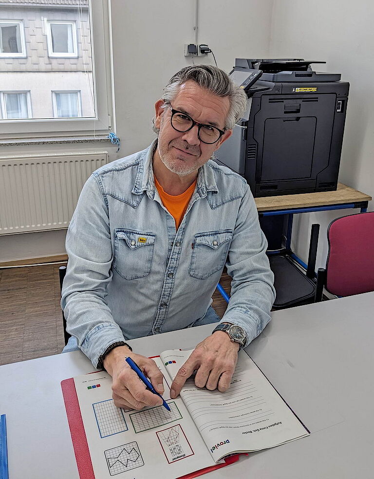 Hart fand es Christoph Orlikowski, dass er während des dreimonatigen Eingangsverfahrens der beruflichen Reha nur einfachere Aufgaben ausführen sollte. Denn zu Beginn geht es darum, zu sehen, wo die neuen Reha-Teilnehmenden stehen, wie ihre Fähigkeiten sowie ihre Ausdauer sind. Jetzt in der Grundausbildung sind die Arbeiten abwechslungsreicher und es kommen die Wochenpakete der Beruflichen Bildung dazu. Diese Bündel von Aufgaben müssen bis zum Wochenende erledigt werden. Sie enthalten Aufgaben zum jeweiligen Arbeitsfeld, etwa zu Abläufen oder Sicherheitsvorschriften, einen Wochenbericht sowie Rätsel, Konzentrationstrainings oder Entspannungsübungen.