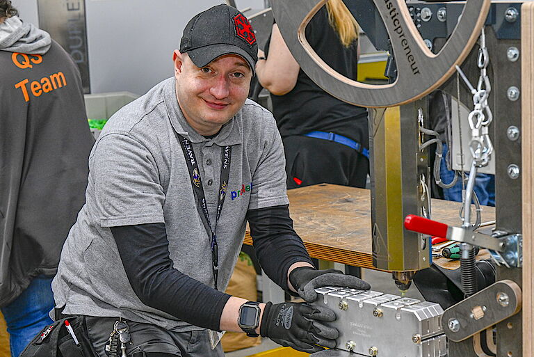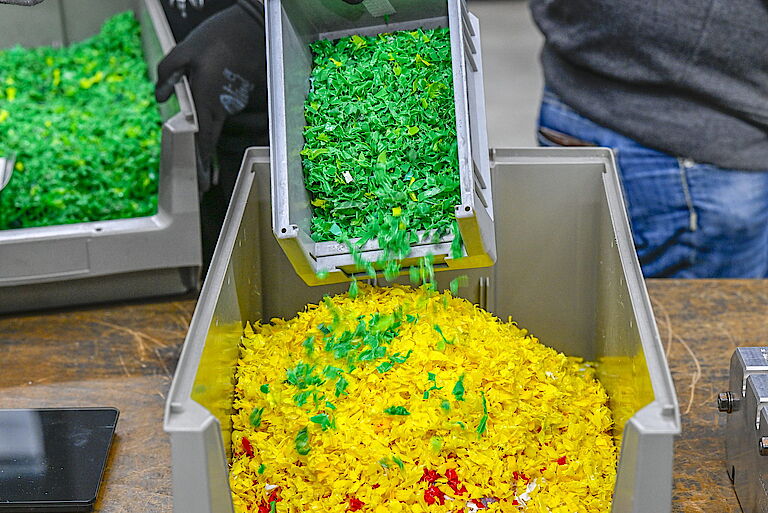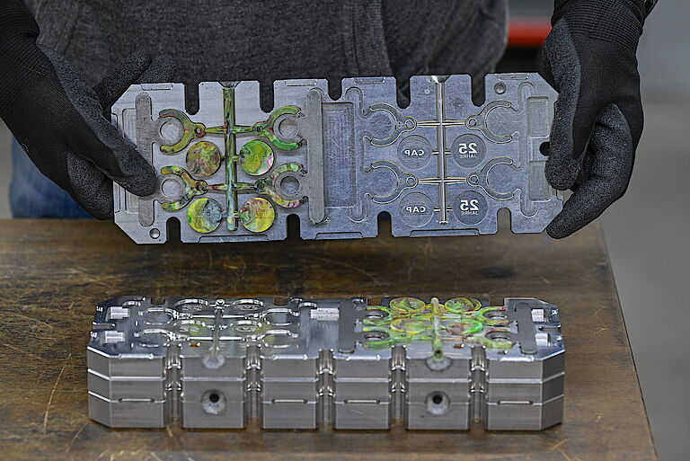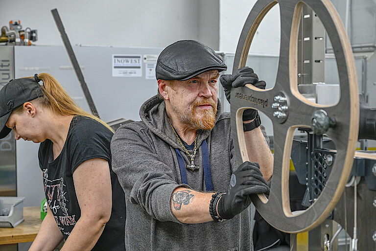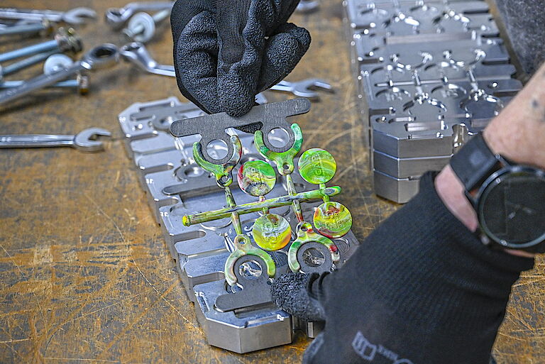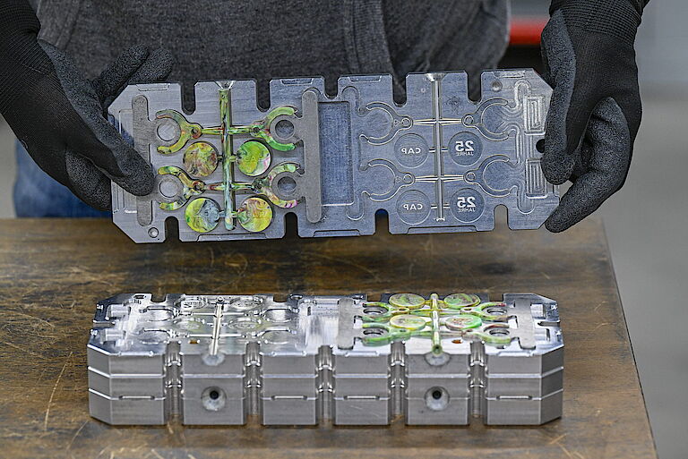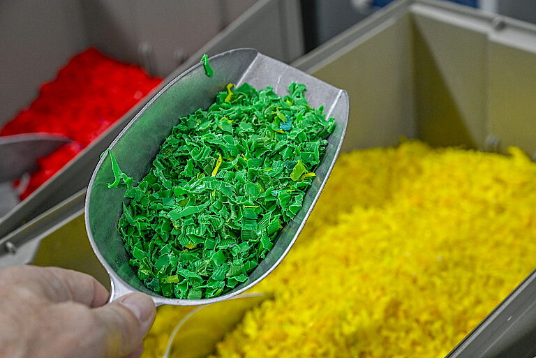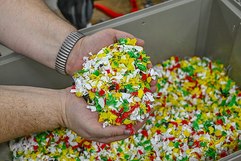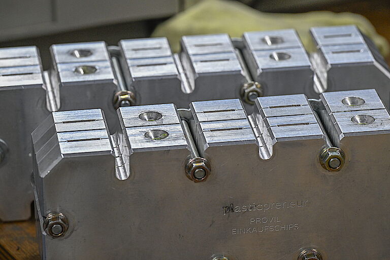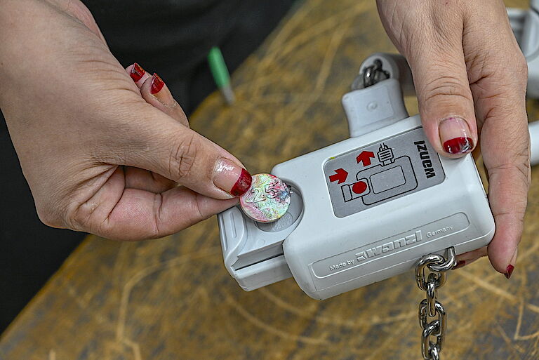 Gerade werden unsere Maschinen aufgebaut und eingestellt. Erste „Probeschüsse“ sind vielversprechend erfolgt. Erster Auftrag: Einkaufswagenchips aus Altplastik zum 25 Jubiläum der CAP Lebensmittelmärkte im Herbst 2024.
