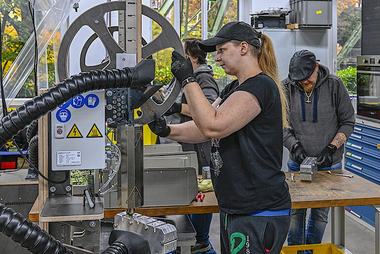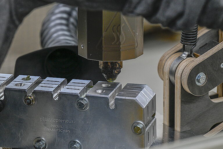 Wir steigen eine in das Netzwerk der weltweiten Neuprodukthersteller aus Altplastik. Wir werden Teil von preciousplastic.com.