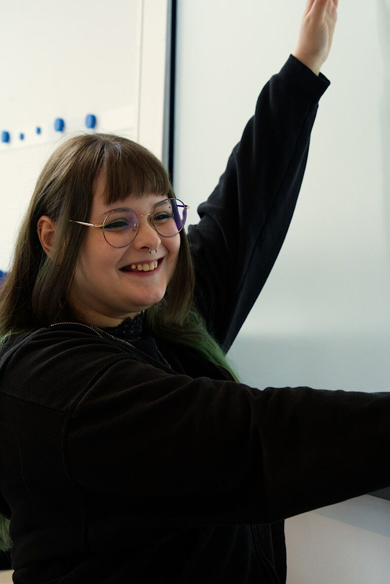 Die Teamarbeit im PIKSL Labor gefällt ihr gut: „Ich arbeite gerne hier, weil ich gefordert werde. Ich lerne viel Neues, ich kann viel anwenden von meinem vorhandenen Wissen.“ Da sie alle Kurse und Workshops zu zweit geben, erfährt sie den intensiven Zusammenhalt. Gibt es Probleme oder Fragen, so kann man sich absprechen, gegenseitig helfen. Dadurch, dass sie jetzt vor Gruppen steht und als digitale Expertin anderen Dinge erklärt, ist sie überhaupt selbstbewusster geworden, kann ihre Interessen besser vertreten.