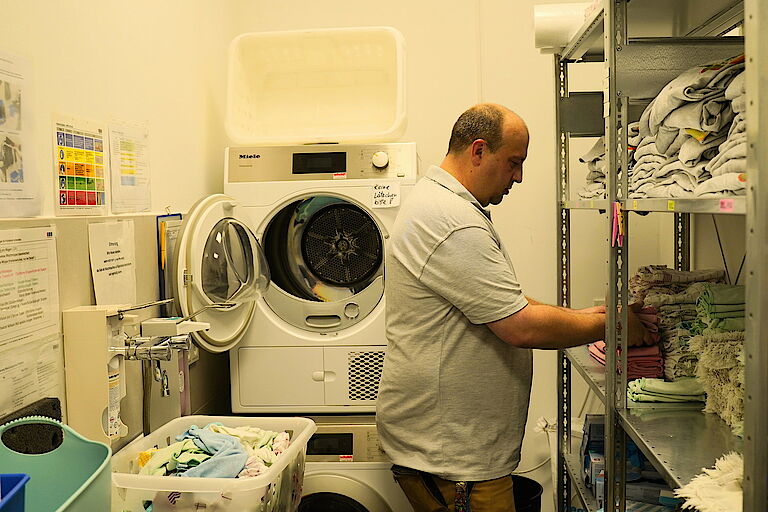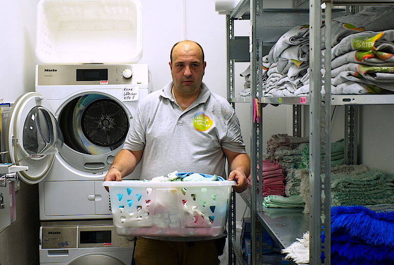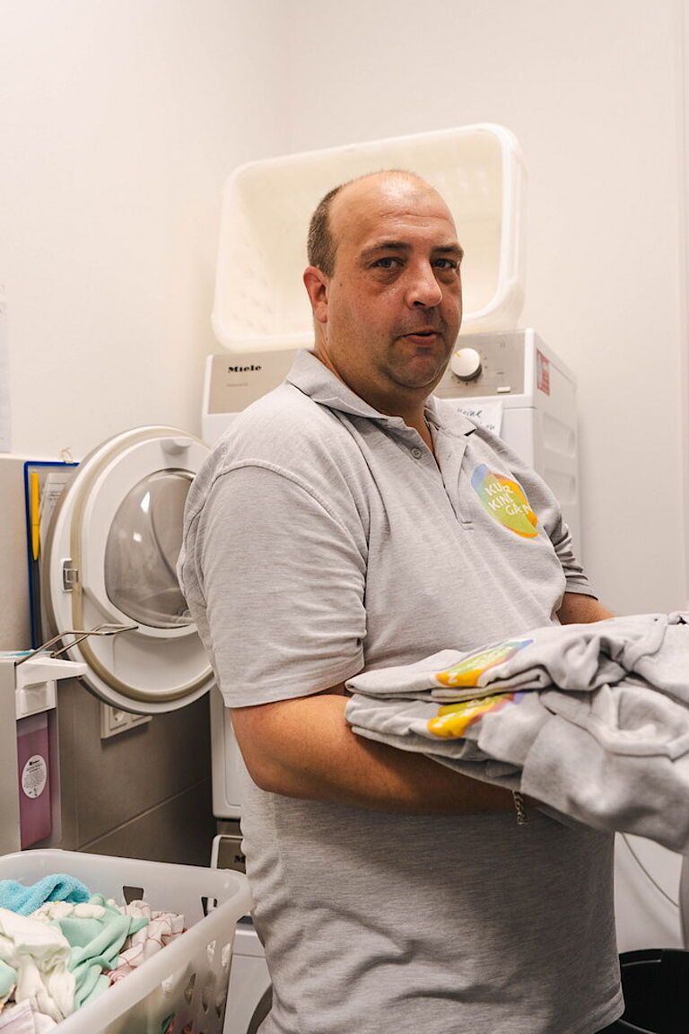 Vielseitig sei die Arbeit im Kulturkindergarten, lobt Frank Schulz. Er habe hier schon viel gelernt – auch, was Reparaturen angeht. So habe er mit seiner Chefin Svenja Storat gemeinsam schon Möbel aufgebaut oder Stühle repariert. Schließlich ist Svenja Storat Handwerkerin und kennt viele Kniffs und Tricks. Wenn er sich mutig solchen neuen Aufgaben stellt, gibt es schönerweise oft die Bestätigung, dass er Neues schafft. Das tut ihm gut. Auch die Elektrogeräte wie Waschmaschine, Putzmaschine und Küchengeräte kann Frank Schulz mittlerweile gut, sicher und selbständig bedienen. Kaum eine Aufgabe gebe es im Kulturkindergarten, die er nicht gelernt hat und jetzt gut beherrscht, berichtet er stolz.