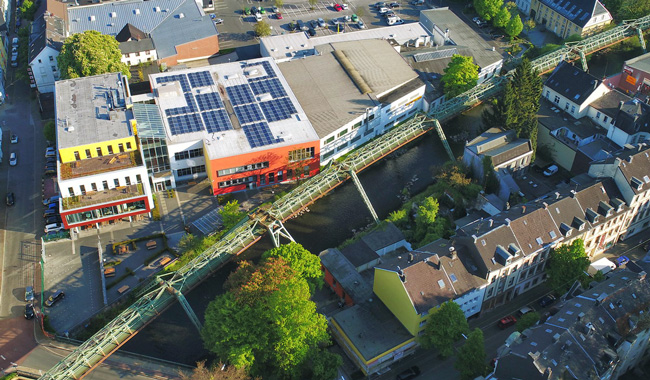 Mit dem Standort an der Farbmühle haben wir 2005 in Unterbarmen die perfekte, zentrale Ergänzung zum Gebäude an der Milchstraße gefunden. Die neuen Räumlichkeiten und Werkstätten wurden 2009 fertiggestellt und lassen uns noch flexibler auf unsere Kunden reagieren. Die Aufteilung und das Verhältnis zwischen Produktion, Service und Bildungseinrichtungen schaffen ein einzigartiges Arbeitsklima direkt an der Wupper. Oben auf der Terrasse spürt man auf Augenhöhe mit der Schwebebahn die Besonderheit der Stadt.
