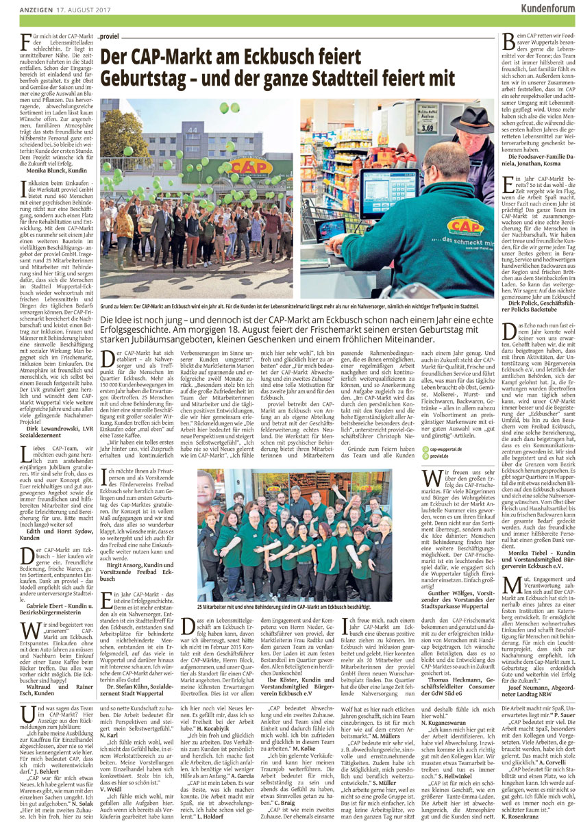 Mit einem ganzseitigen Kundenforum in der Westdeutschen Zeitung gab/gibt es alles zu unserem ersten Jubiläum auf einen Blick. Kundenmeinungen, Mitarbeiterstatements und Glückwünsche von Multiplikatoren und Wegbegleitern wie Dirk Lewandrowski, Dr.... mehr