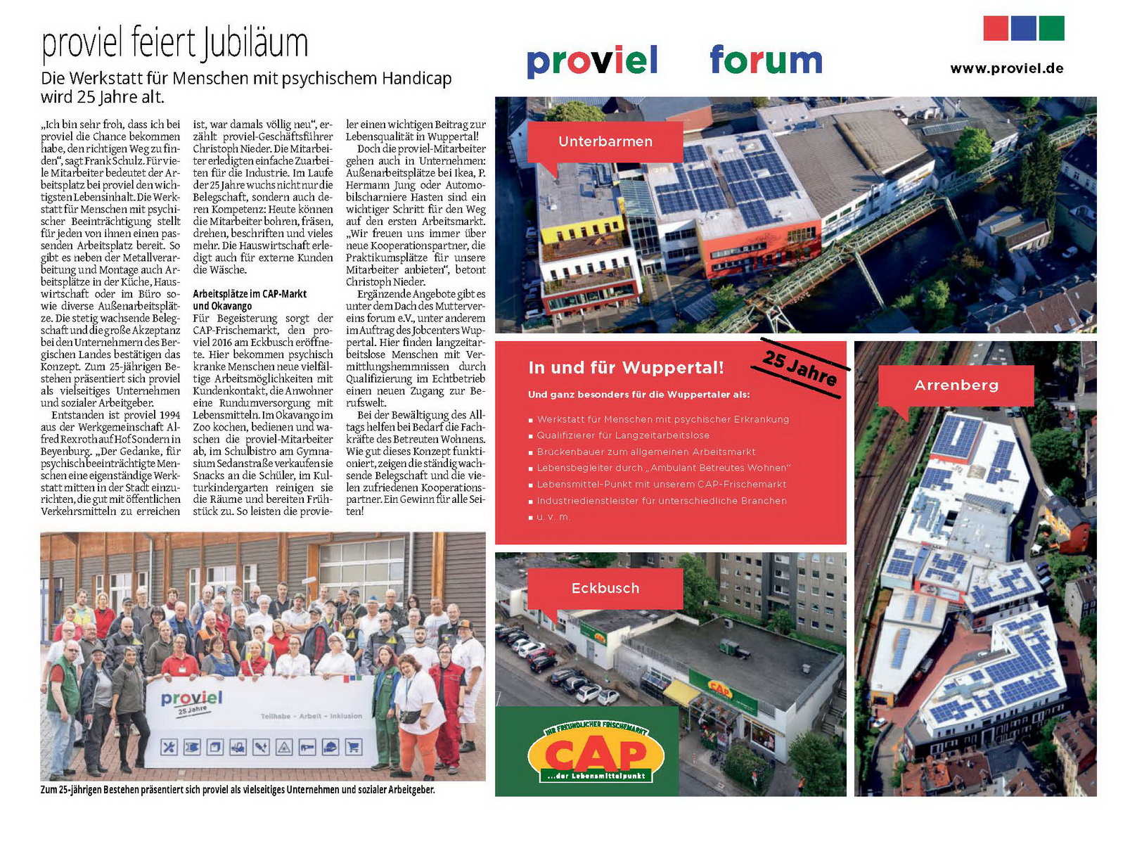 proviel feiert Jubiläum. Die Werkstatt für Menschen mit psychischem Handicap wird 25 Jahre alt. mehr