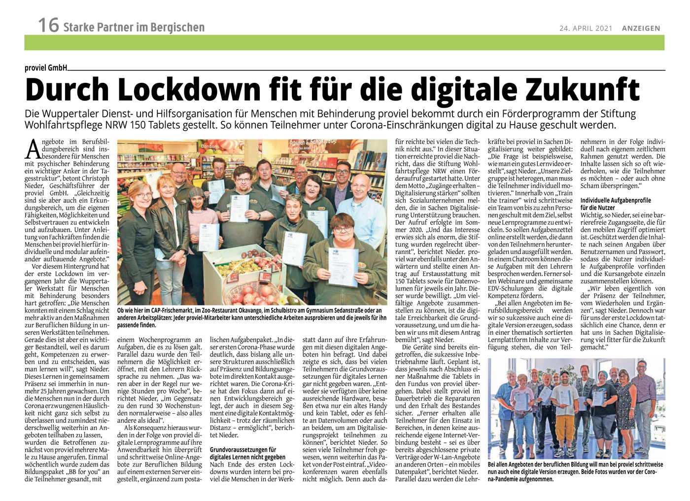 Gerne veröffentlichen wir an dieser Stelle einen tollen Einblick in unsere tägliche Arbeit über einen Zeitungsartikel in der Westdeutschen Zeitung. Lokalchef Lothar Leuschen blickt im „Thema des Tages“ genauer auf und in unser Unternehmen und auf... mehr