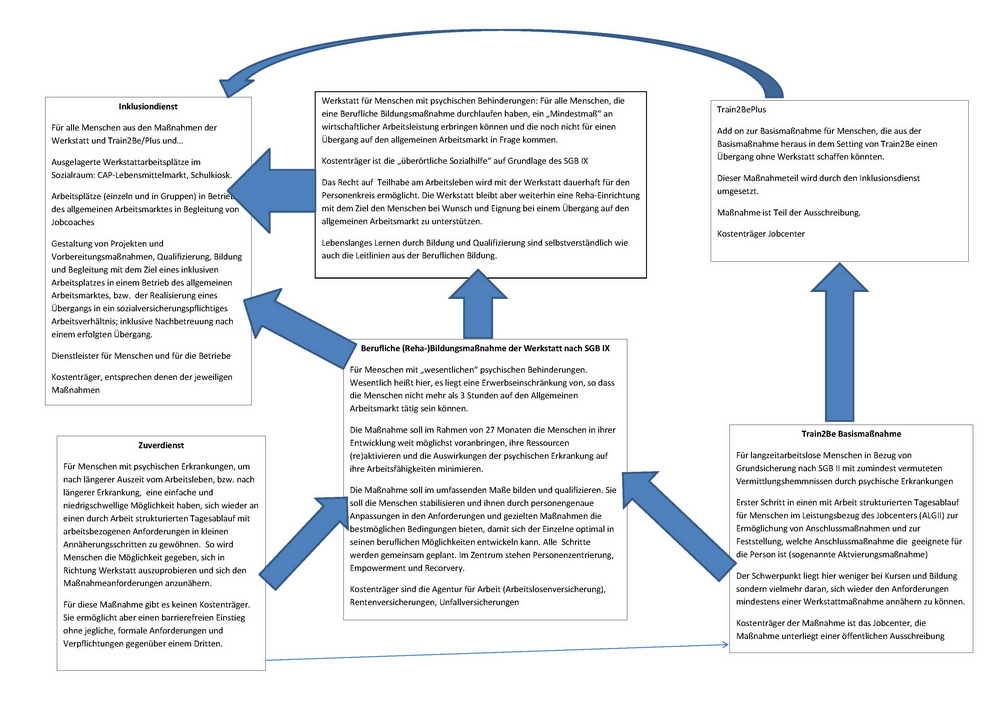 Aus dem Zuverdienstprojekt heraus entwickelte sich 2007 in Kooperation mit dem Jobcenter eine neue Maßnahme, die wir seit dem parallel zur Werkstatt betreiben. Diese trug zunächst den Namen „provieliert“ bevor sie 2013 in die öffentliche Ausschreibung ging und in „Train2Be“ umfirmiert wurde. Die Maßnahme hat den Schwerpunkt, Menschen, die seit langen Jahren arbeitslos sind und bei denen besondere Vermittlungshemmnisse z. B. aufgrund psychischer Erkrankungen bestehen, beim (Wieder-) Einstieg in das Arbeitsleben zu unterstützen. Durch diese Maßnahme finden weitere 250 Menschen einen Arbeits-, bzw. Maßnahmeplatz bei uns.
